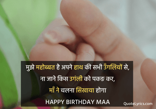 मुझे महोब्बत है अपने हाथ की, सब उगंलीयों से, ना जाने किस उगंली को पकङ कर, माँ ने चलना सिखाया होगा Happy Birthday Maa