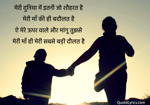 मेरी दुनिया में इतनी जो शौहरत है मेरी माँ की ही बदौलत है ऐ मेरे ऊपर वाले और मांगू तुझसे मेरी माँ ही मेरी सबसे बड़ी दौलत है